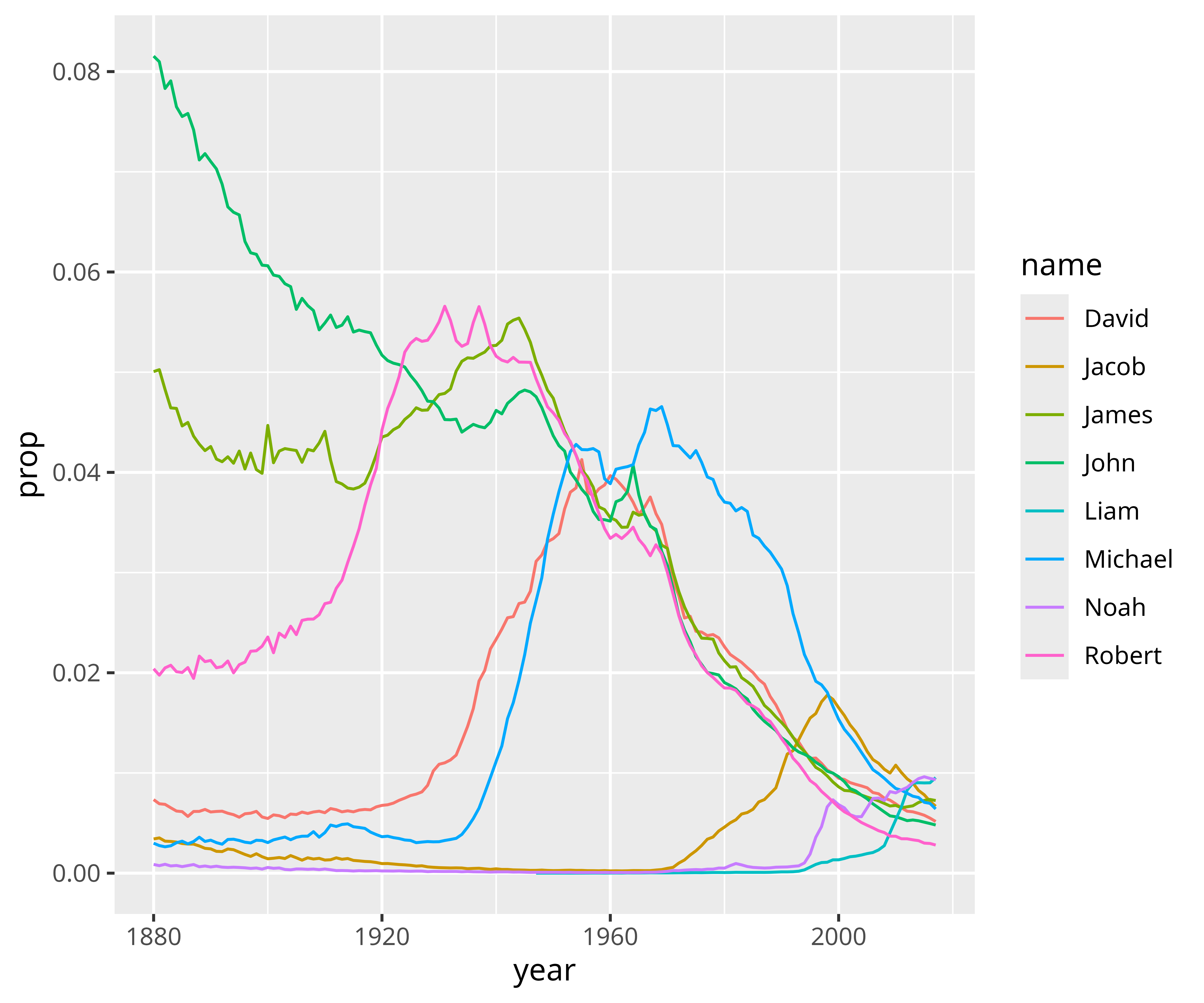 number_ones[1] "John" "Robert" "James" "Michael" "David" "Jacob" "Noah"