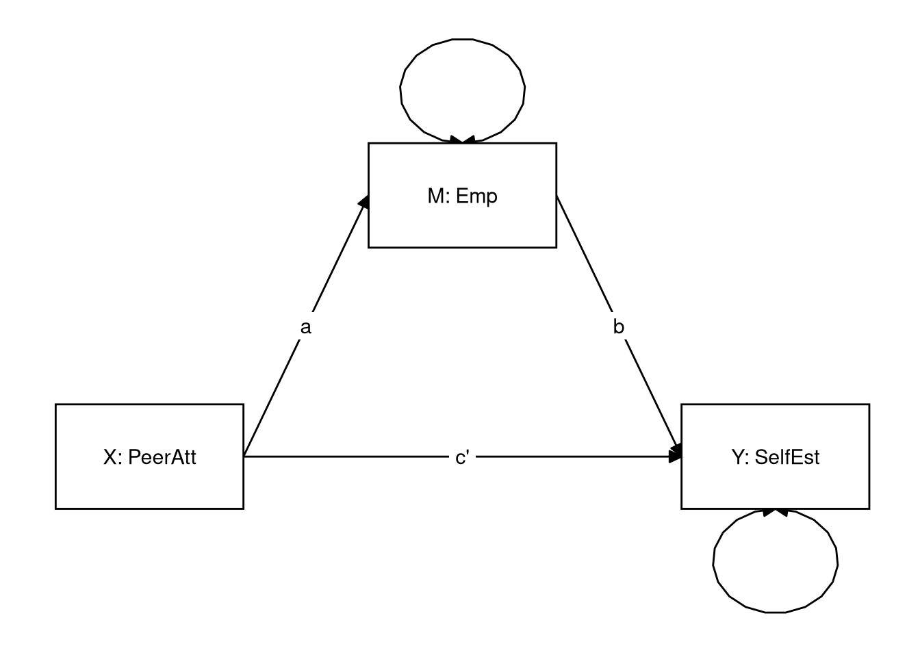 Suppose we are interested in the (indirect) effect of peer attachment on self-esteem, and whether empathy has a mediating effect on this relationship.
