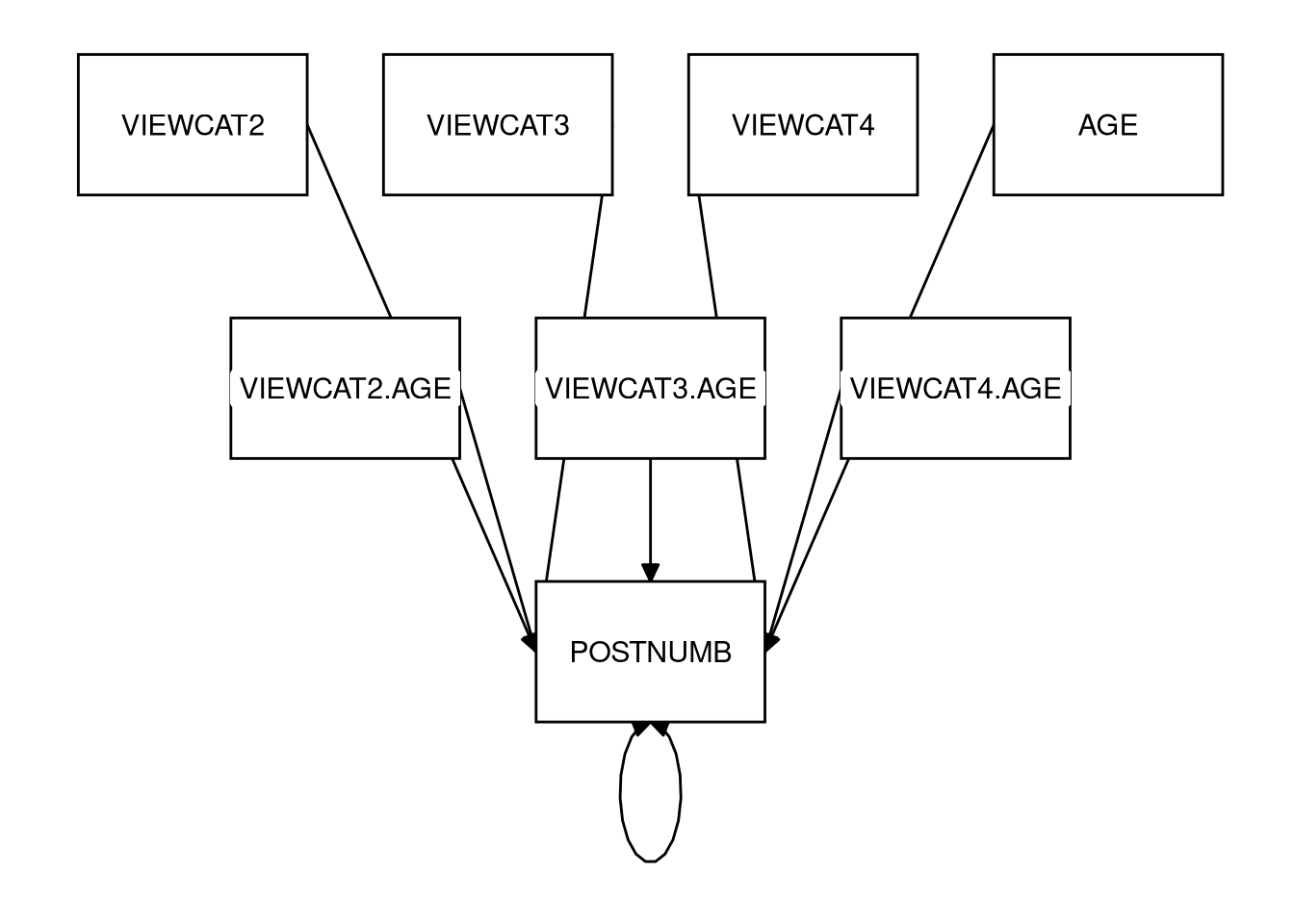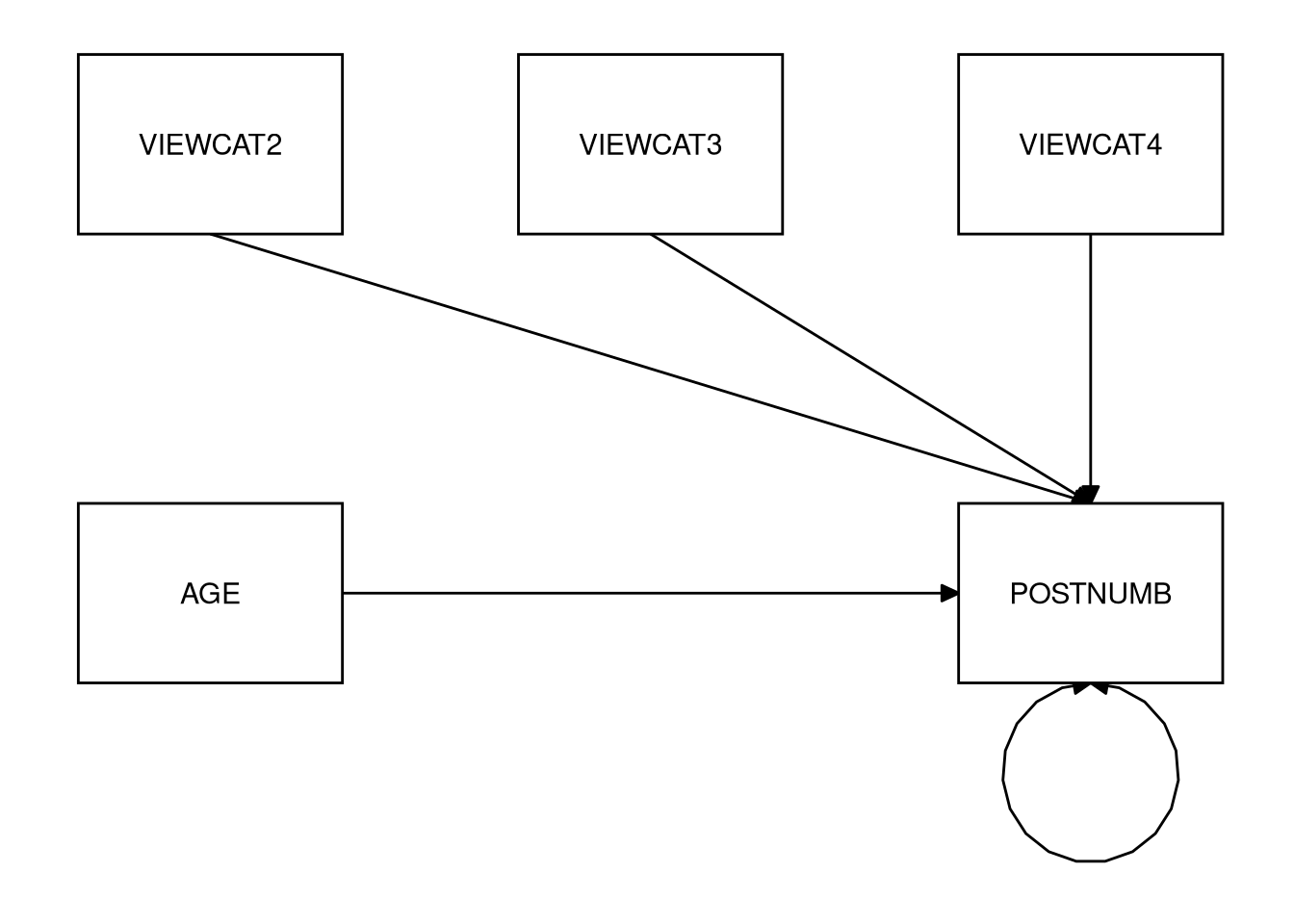 - Does VIEWCAT significantly moderate the effect of AGE on POSTNUMB?
